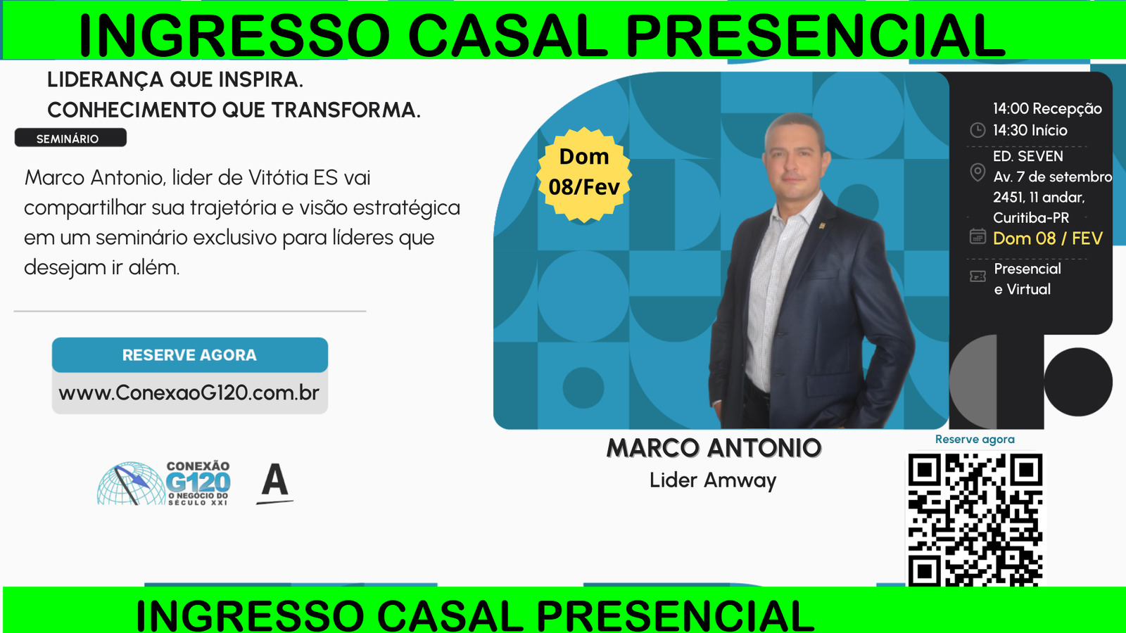 ✅ Participar dos 5 Seminários Out/25 a Fev/26, (G120 ou Locais), ingressos em nome dos titulares, http://ConexaoG120.com.br